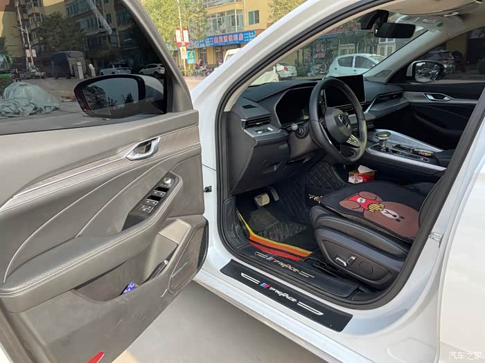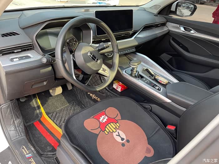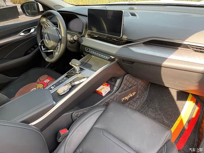 内饰:黑色内饰也非常大气,用料和做工都非常不错,上下层次分明, 使用了几种不同的材质搭配的恰到好处,手能摸到的地方都是皮质和塘塑材质的,在保持时尚感的同时也营造出了一定的豪华氛围,明显要比同价位的合资品牌车型更为高档。