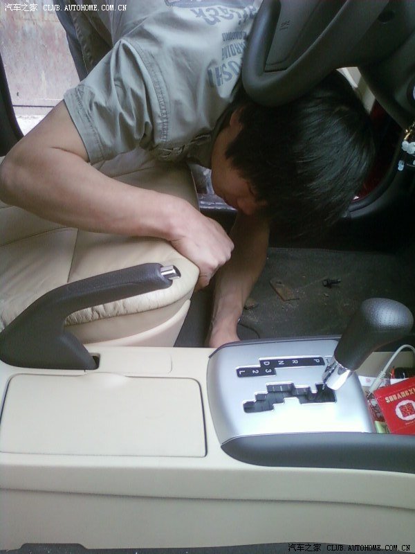 小师傅在调整位置,悦动装宝马5系座椅真是刚刚好啊,正好放进去
