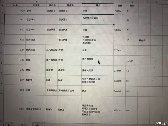 简单拟了一张景点规划表,但实际情况这只是个参考