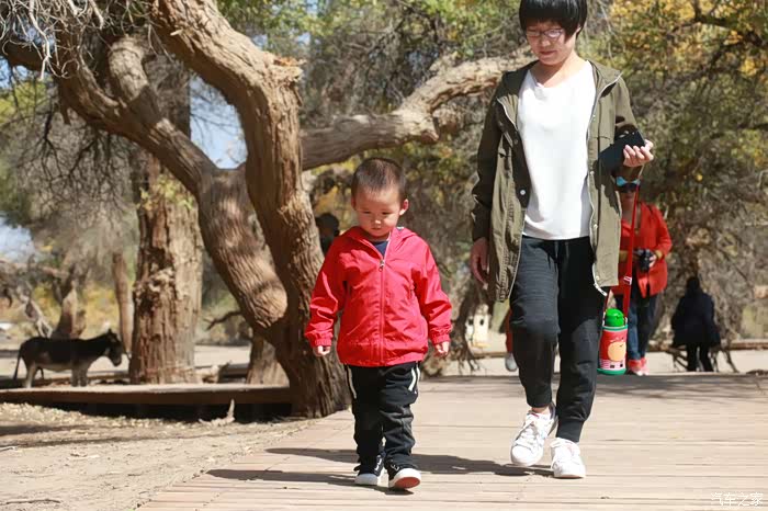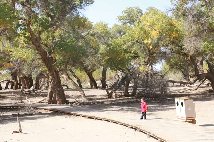 今天的重点,不是美丽的风景,孩子在这天2周岁,一次很特别的生日,我相信,以后他看到照片,对这段旅行应该还会有些许记忆。谁筑起了人生长廊,谁呵护你成长,愿你能与这胡杨林一样,任他环境恶劣,你不殇,岁无恙