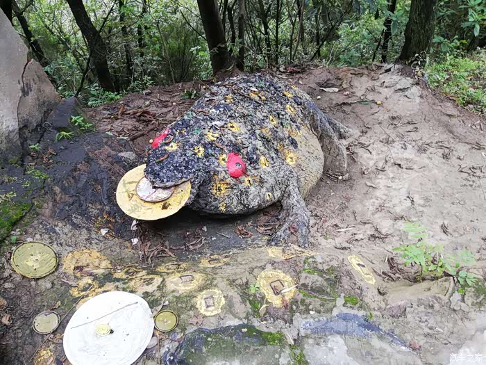 然后牌匾下面是一只含着金钱的石像蟾蜍,寓意明显深刻。