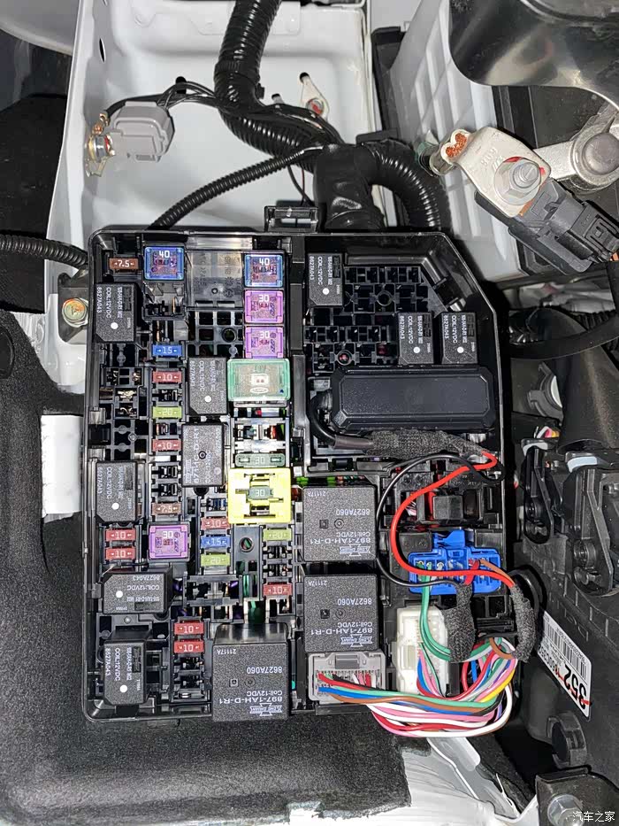 欧蓝德的发动机舱非常大,很多线路都能看的一清二楚。