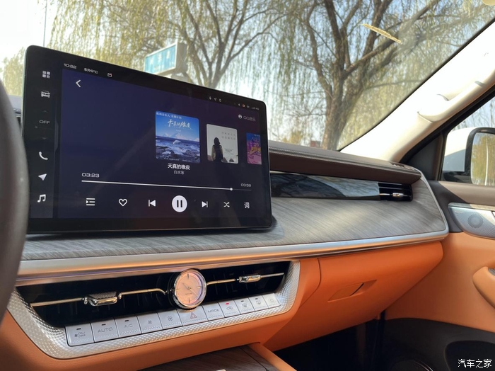 14.6英寸的触控式的中控屏内集成了多种功能和应用程序,我常用的是导航、查看车辆信息、qq音乐。如果需要查看其他应用程序,可以触屏操作,很方便没卡顿。