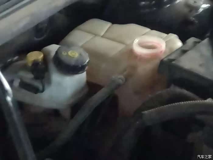 防冻液壶已经空了,灯更换好节温器后需要添加防冻液至上下线之间。