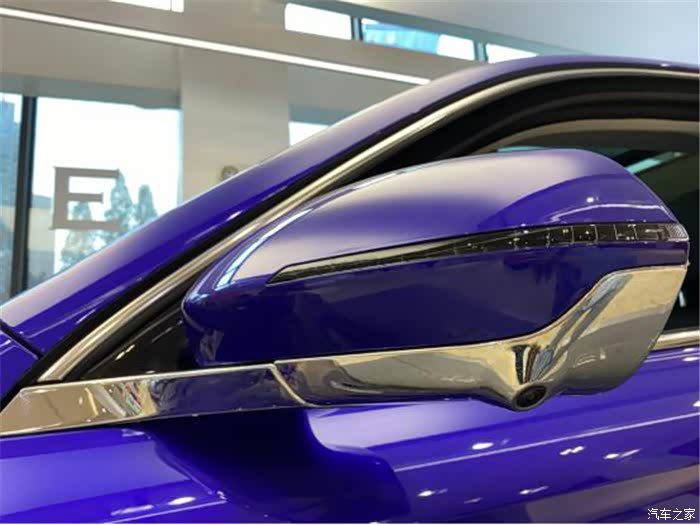 车身的细节方面也做的非常精致,笔直锋利的腰线贯穿车身,车身两侧还有类似鱼鳍的导风口,非常的帅气;后视镜则采用了上下拼色设计,并有集成转向灯的设计,电子收缩和自动加热功能都非常的贴心,非常的人性化