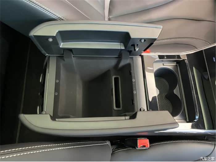 位于中央储物箱后面有个专门为后排乘客打造的空调出风口,镀铬饰条配上黑色钢琴烤漆非常的有质感,非常的贴心