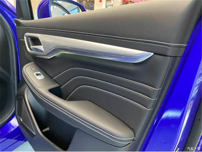 荣威MARVEL X车门上有许多的多功能按键,配有64色氛围灯,不仅可以随着音乐一起律动,还可以进行语音联动,非常的高级
