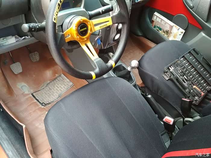 再后来,在论坛中看到很多大哥们都改了内饰的颜色,我也闲着没事儿,但也是觉得蛋蛋的内饰没有什么突出的,全灰色,很压抑,所以自己就拆了这些东西,买了自喷漆,就开干了。弄好后的效果还是蛮好的。