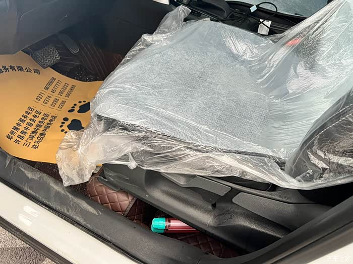 工作人员说怕把车座椅弄脏,给我套了座椅套呢,还铺上了脚垫纸,细节之处,点个赞!