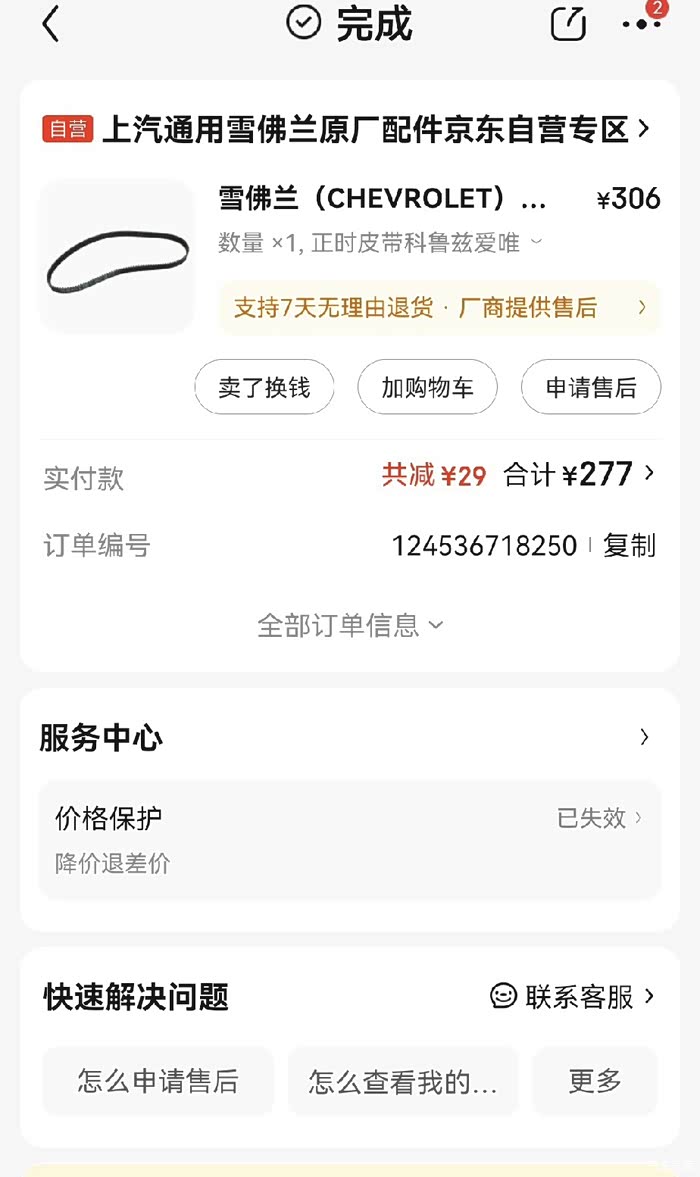 发电机皮带原厂的,京东雪弗兰旗舰店购买100多