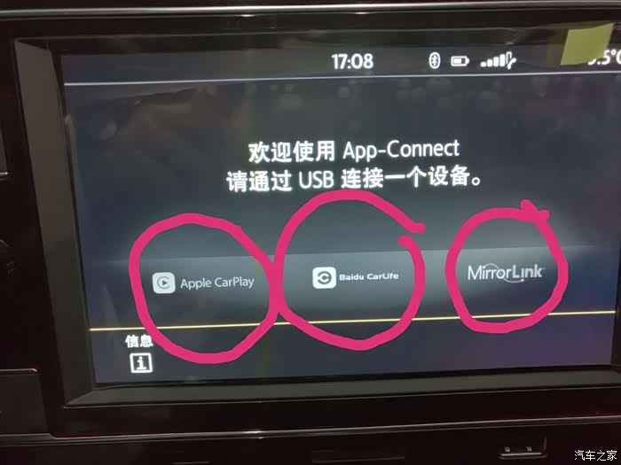 连接界面有三种方式Apple CarPlay /Baidu CarLife /MirrorLlink