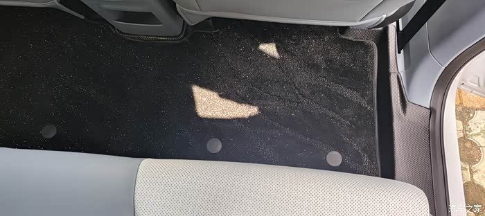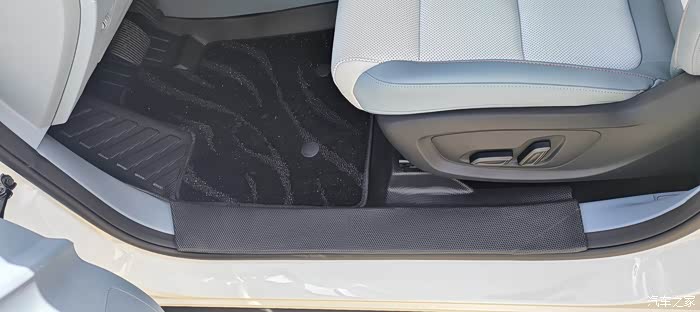 网上买的脚垫,就是现在比较热门的TPE材质,确实没有味道,上面铺的叫星空毯,带包门槛的,自己裁剪的话刚好盖信门槛密封条,大家看主驾驶的我还没裁剪呢,这样其实就可以,我沿外沿剪了半公分,刚好塞入密封条,这样更服帖点。