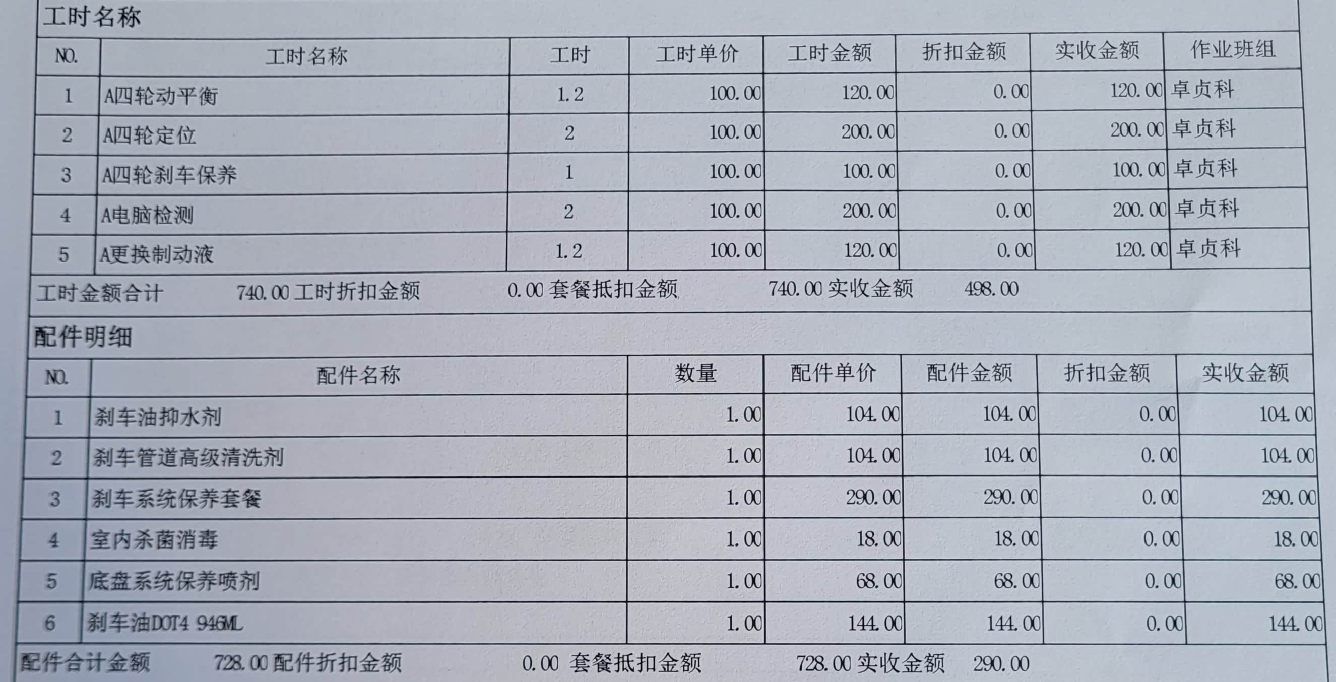 之前4s店里活动680元买了个刹车系统保养套餐,这次用掉。