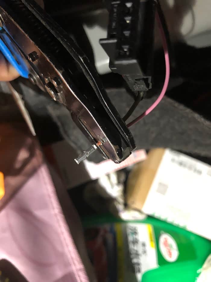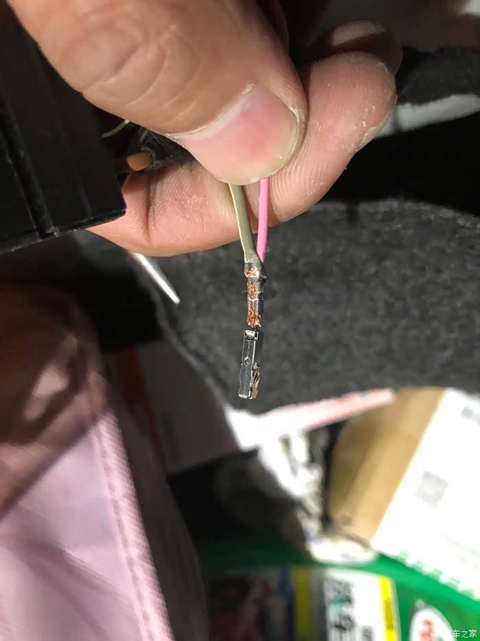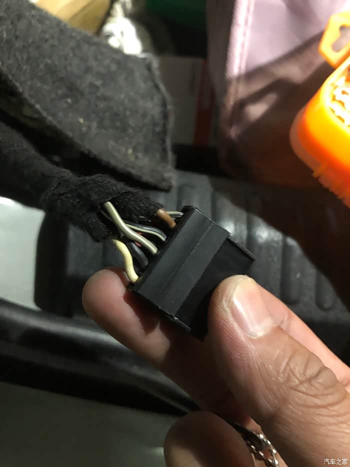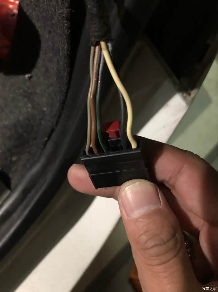 这是左侧尾灯插头,用电笔测了下,第三根灰白就是后雾灯线