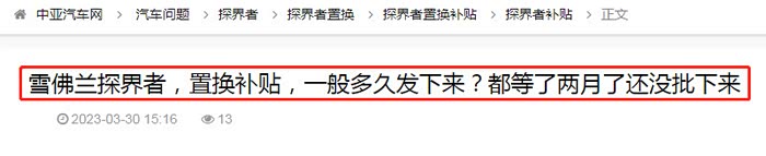 另外,小编在搜索时还发现,不仅有车主反映置换补贴不给,车质网上还有车主反映遇到了:延保承诺不兑现、免费保养不兑现等情况。