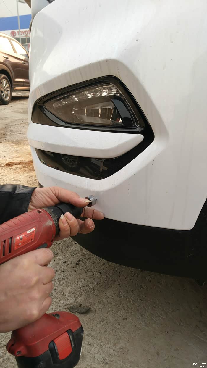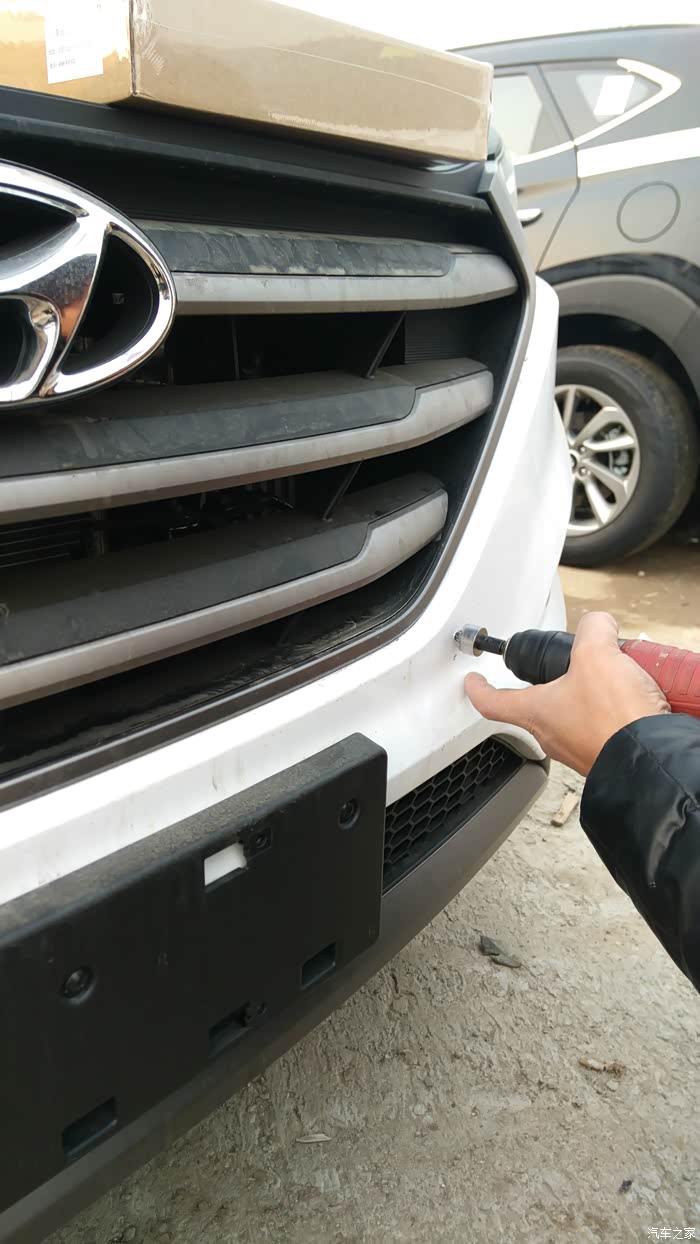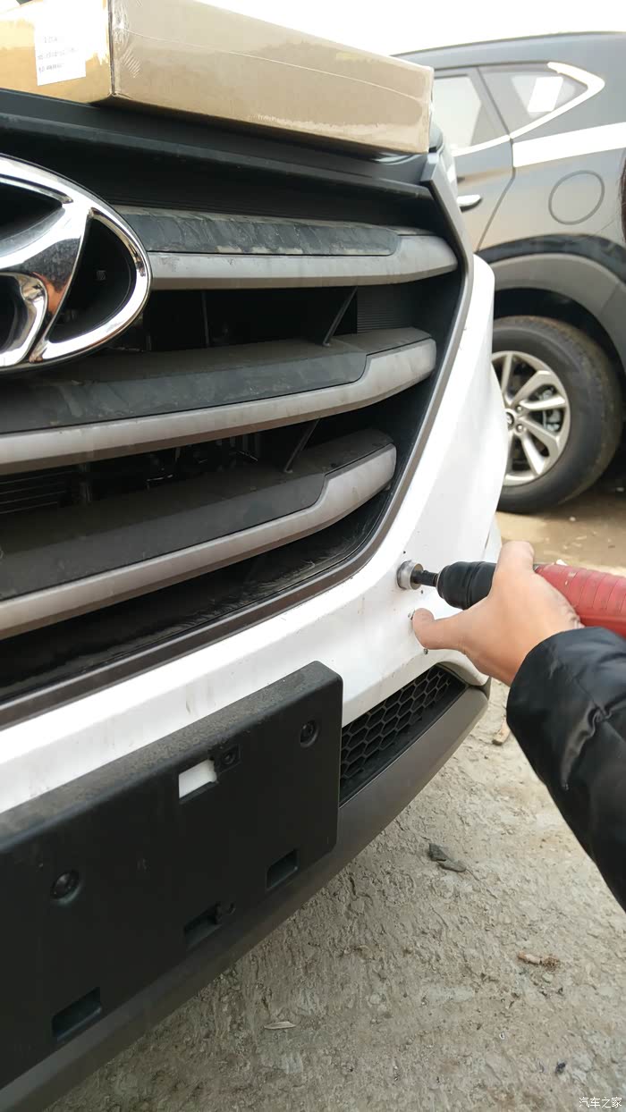途胜拿到钥匙,第一件事,安装前雷达,在4S店停车场安装(雷达自己买的,安装工直接过去的),你们有可能说钱雷达没用,但是在我看来,奔驰、宝马这么高端车都标配的东西,一定有它的用途,加上我开过几次邻居家的汉兰达,也安装了前雷达,而且是前4后4的雷达(途胜有原配后雷达),的确是很方便,在邻居的推荐下,也买了同品牌的,呵呵,当时车还没提到,就先买回了,上图吧