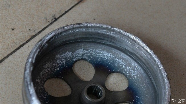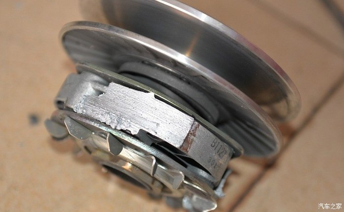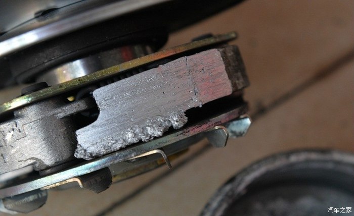 甩块磨损  甩块一般都是比较耐用的。一般最少能用3万公里。下面的图就是磨平的甩块。甩块外面是有一层跟刹车皮一样的材质。要是磨平了 就要换了。磨平后就会造成金属之间的摩擦。车子爆响,震动剧烈。请看图,这个是磨平的。