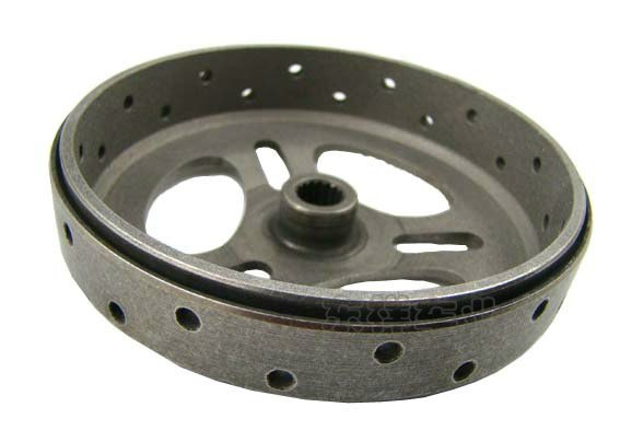 我们国产 的都是用这种平平的碗公,制作工艺很简单。大家可以看看前面的巧格原车的碗公,作为对比。其实踏板车整个传动离合部分是有非常多的学问的。制作精良的碗公 都是有花纹的,就如同汽车的轮胎,不同的花纹 效果也不同,最差的就是没有花纹,很容易造成打滑。这一点大家都很容易理解吧。而甩块部分就是刹车皮的材质,材质好的摩擦系数高,不易造成打滑。而普利盘部分一般磨损的就是普利珠而已,如果是用多边形普利珠。其实可以最少2万公里检查一次。可惜的是国内还是用比较老旧的圆形普利珠。买银刃的朋友说车子抖动厉害 其实换个碗公就可以了,效果绝对立竿见影,要是米多的也可以吧甩块一起换了。其实原车配的甩块足够平常日常使用了。普利珠可以换成多边形普利珠,加速坑定比原车的顺畅。