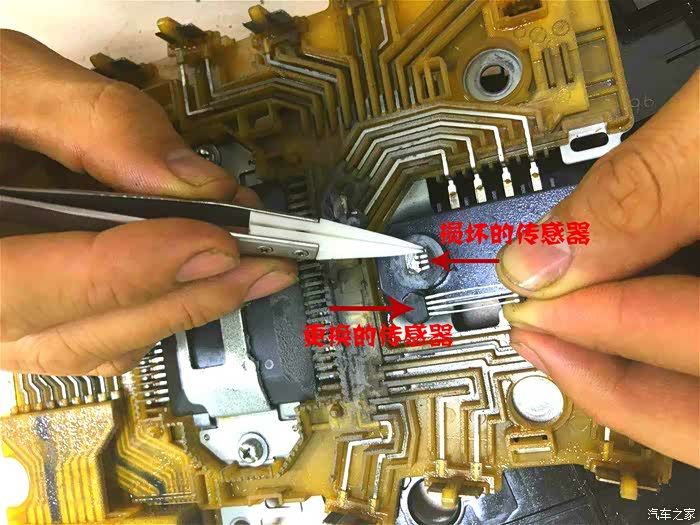 切割完毕,挑战成功,开始更换英菲尼迪Q50S手自一体7AT变速箱电脑版的霍尔传感器。