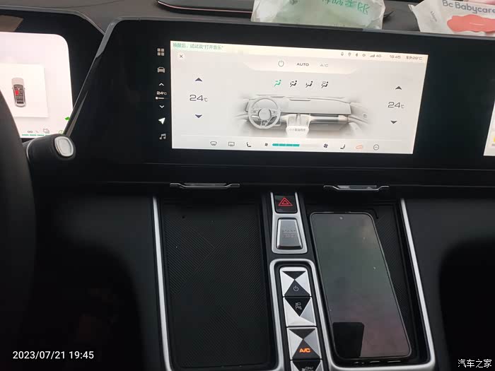 打开空调,因为差不多是晚上了,空调调到24°也很凉快,有了这车,空调自由,而且动力丝毫不受影响