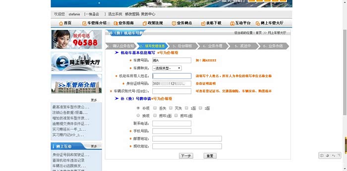首先要在当地的公安局网站上填写补办的表格。网址的话大家一搜应该就能搜到。填完了之后需要上传一些资料,行驶证,驾照,公安局笔录等。等待后台审核。审核之后你需要把表格打印下来,附加公安局备案的笔录快递过去。
