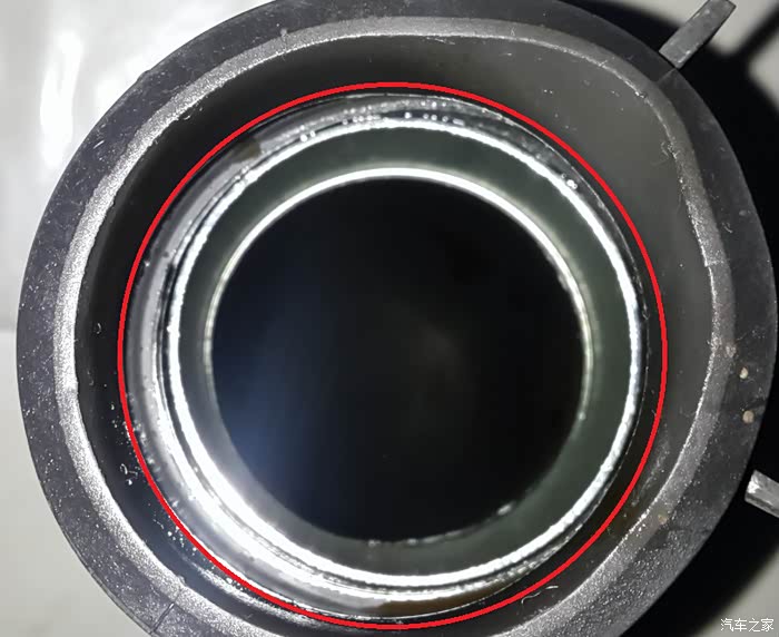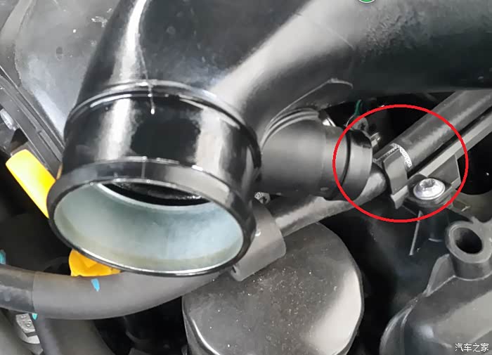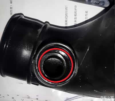4. 检查进气管与曲轴箱通风管连接处内部有一圈挡圈,挡圈被磨掉后在密封进行安装;