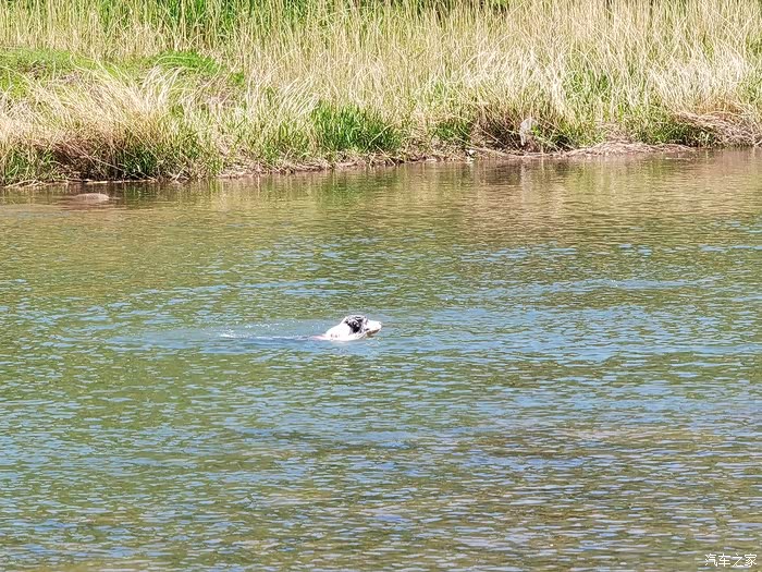 看出来这个是啥了不,小狗开心的在水里游来游去。