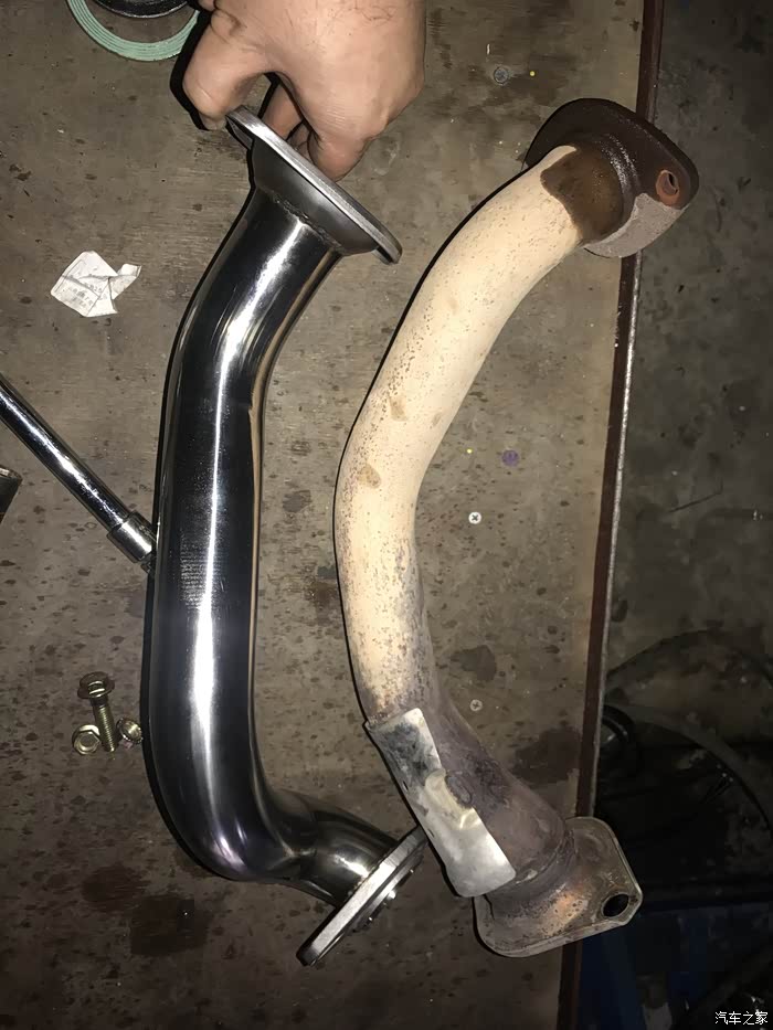 2.更换了OEM为TRD代工的加粗贴底排气头段,解决了“猪大肠”问题,同时从图上可以看到原来是排气头段热需要导风板散热,现在是后段热了,说明排气更顺畅了,目前已经经过10000km无任何异样。