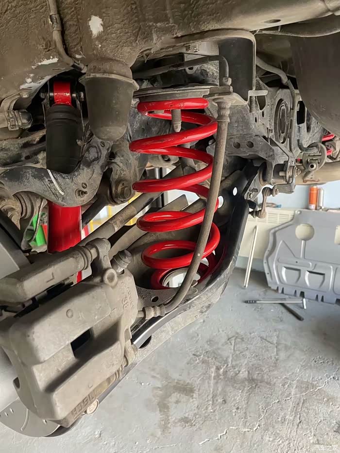 3.更换OEM为TRD代工的升高1.5寸,软硬10级可调减震筒,现在前轮调4,后轮调2,带着父母环渤海出游(可见《2021自驾游》帖子)加上平时3000多公里测试非常好。而且可以根据不同路段进行软硬调节,但是这个是手动调节的,前轮还好左右打死方向就可以调节,后轮必须钻到车下,不过也好机械调节的不容易坏。由于我们的悬挂是双叉臂结构导致后轮更换减震后注销内倾角有了一个超过规定值0.15°角的外顷,这个角度没法调整回来,除非换了上支臂,但是就是这个肉眼看不出来的0.15°角的外顷,让车辆弯道时后轮随动的感觉有了质的提升。目前跑了3000km用Michelin胎压胎纹表测量没发现磨损不均,不过为了更好应对这个外顷的偏差防止吃胎,还是坚持每10000km五条轮胎对调比较好。