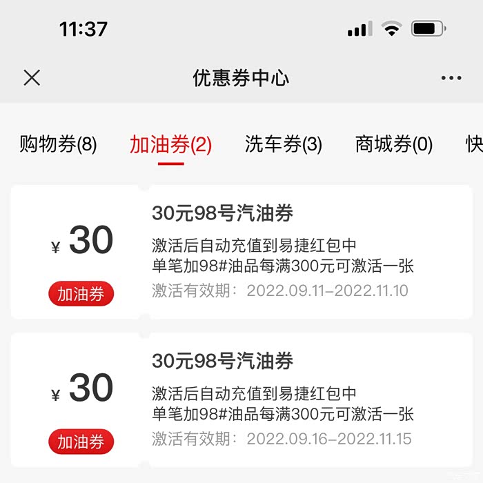 我是办的中石化加油卡或者用石化钱包app,都可以享受很多福利折扣和现金券。每周五会员日,充1000可送现金券40元起,以及抽奖券,里面包括加油返现等。日常最常用的就是加300元,可以去公众号里抽转盘,有30/38/58/98的加油返现卷,加300抽一次,500抽两次,大概率都能抽到30的现金券。然后每次加300又能返30现金到红包账户,累积到100就可以提现出来到油卡继续加油。 每次加油还有洗车券送。