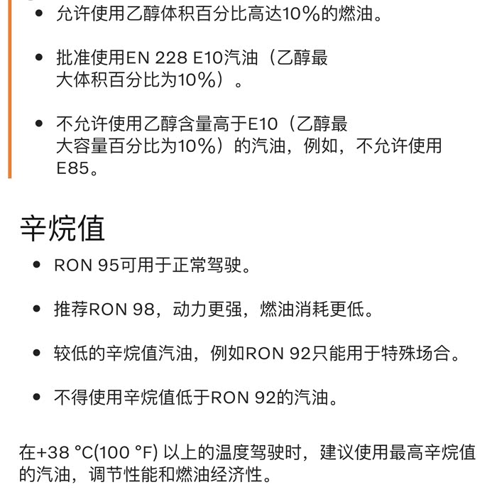 打开油箱盖可以发现,沃尔沃XC60原厂推荐95或更高标号的汽油。另外在使用手册里也可以看到,关于辛烷值说明:RON 95可用于正常驾驶,推荐RON 98,动力更强,燃油消耗更低。