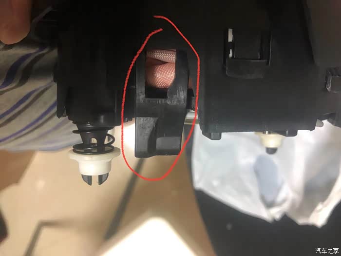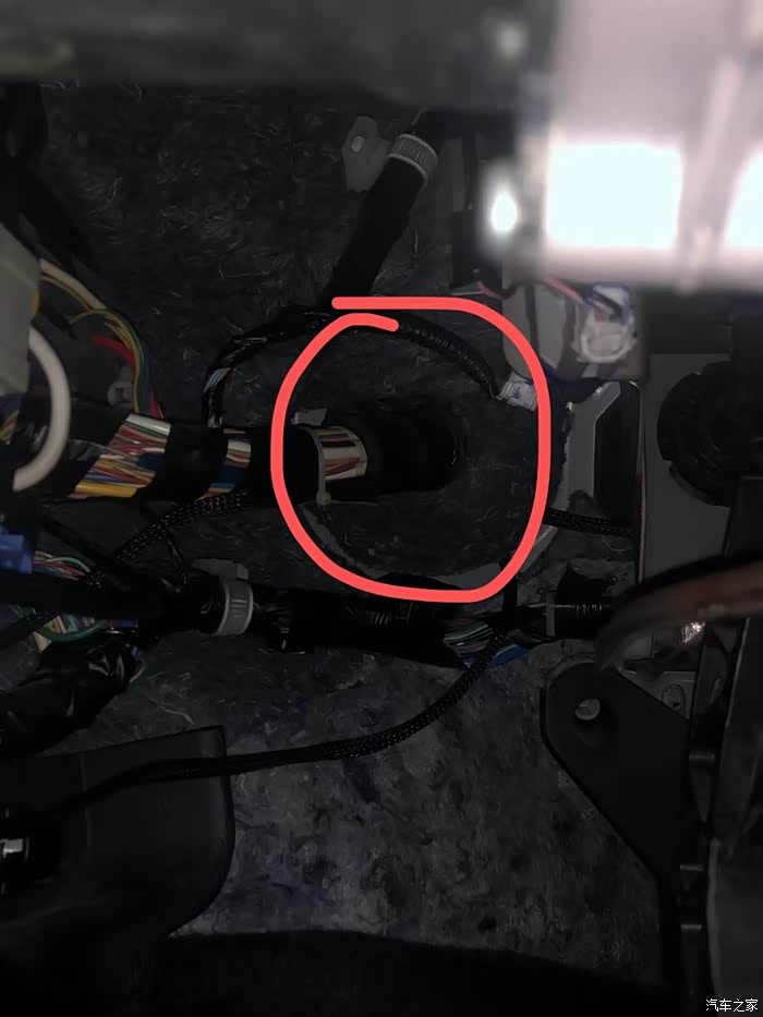 扶手箱信号线最好走线把线从这里捅进去,从扶手箱后面走出来。