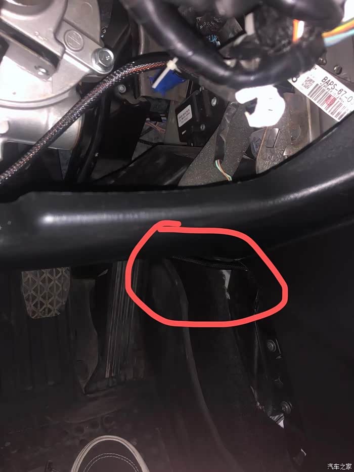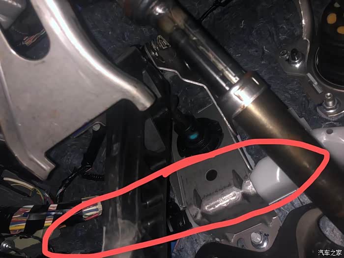 装这个需要把方向盘转向柱防护壳拆开一点(不需要完全拆掉),首先要拆掉防护壳下方的两颗螺丝。