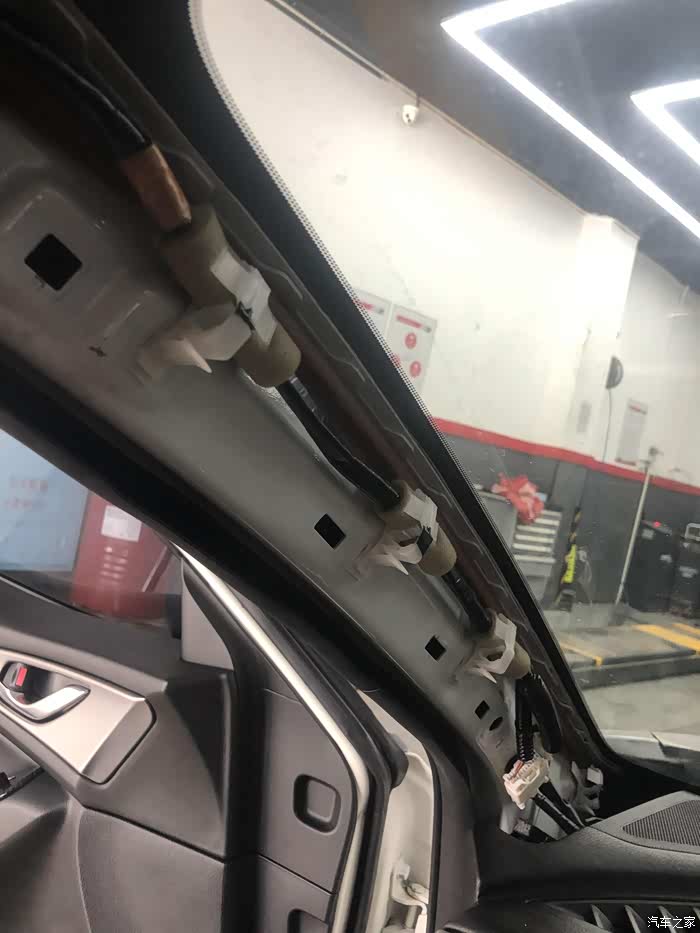 接下来我们需要走线,撬开A柱防尘盖。