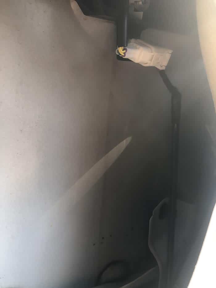 拆掉副驾驶侧雨刮防水板(驾驶侧雨刮防水板只需有个缝隙就可以了)。防水板全部用膨胀螺丝固定,非常好拆,用平底翘板先翘螺丝,卡扣很轻松就拿掉了。拆掉防水板后移开副驾防水板看到有蜂鸣器固定卡位,但是发现上面有个手办(假的蜂鸣器线),拆掉他,安上蜂鸣器。