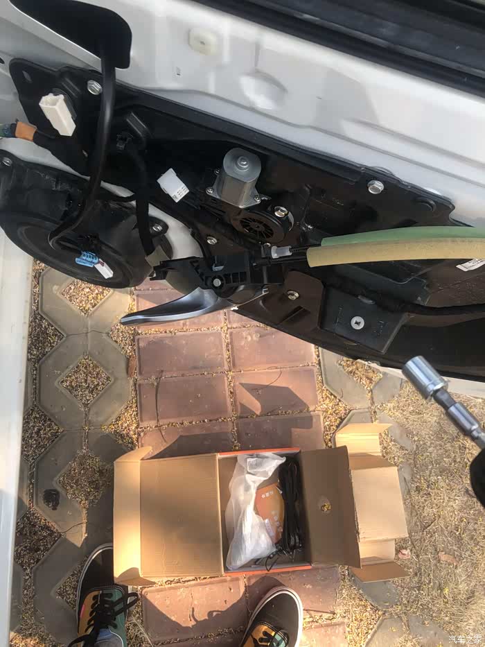 插上保险通电,准备刷程序。刷完程序后确认一切功能正常再把门板,扶手箱后盖等装回原位,门板建议先将下面的卡扣固定好,再固定两侧的卡扣,先固定两侧卡扣的话,下面的卡扣会对不上。