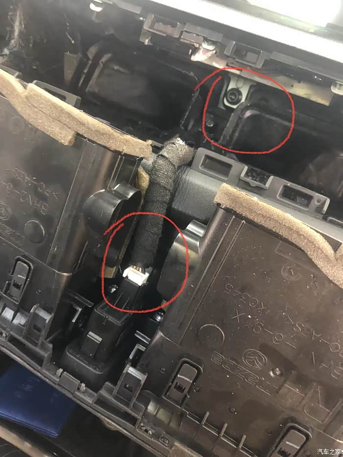 把高配线束及所有的接线全部插好,这里可以顺便安装中置喇叭(一般都是接口对插),原装的中置喇叭接口居然是个模型