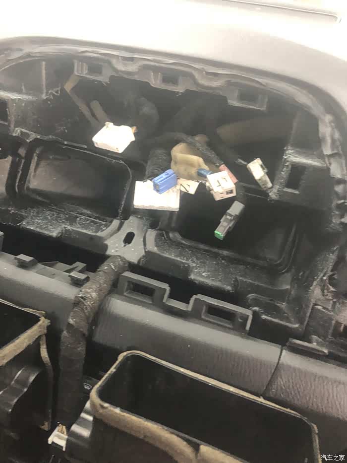 ,所以能自己动手就自己动手吧。拆掉仪表台后就可以更换蒸发箱了,图中的是原来的蒸发箱,可以看到后面是平的没有后排出风口。