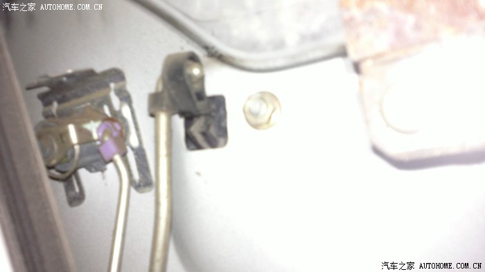 这个地方就是了,拍的模糊,但是能看出来把。已经断了。。。。把旁边的两个黄铜色的螺丝拧下来就可以了。塑料挂钩不好拆,暴力破坏就好了,反正已经坏了。。。。