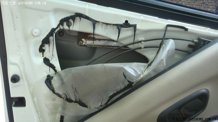 这个就是车门里的情况,这张塑料纸太单薄了!~撕开就可以了。