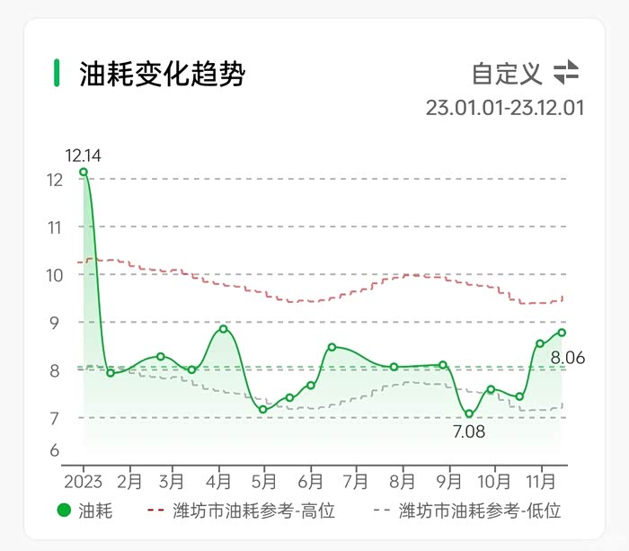2022-2023年油耗对比,看着越来越省油了。