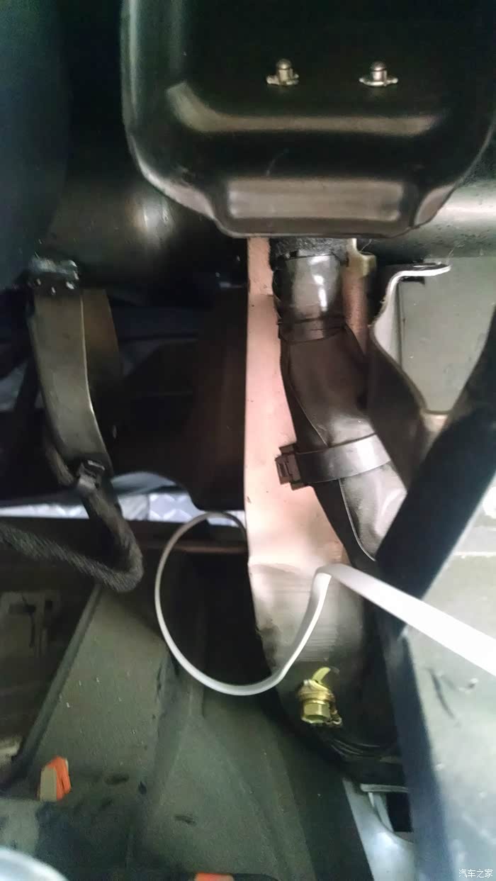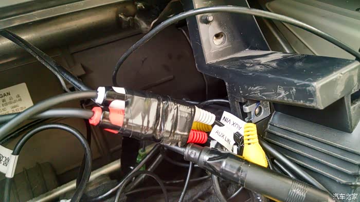 把aux线从这里放出来,就可以从方向盘下面出来了