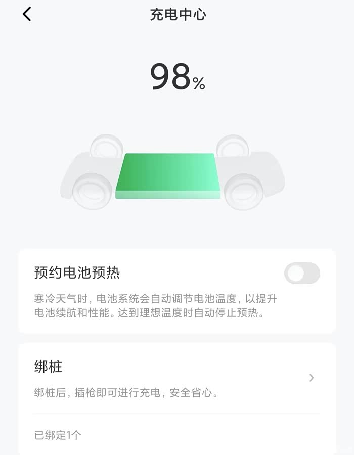 远程启动空调:有了远程启动空调,可以在出门前 10 分钟,用手机 APP 提前打开空调,等我走到车边的时候,车内已经凉爽宜人了 ,简直不要太舒服。冬天也一样,提前预热空调,上车就能感受到温暖,还能顺便给电池预热,提高电池的活性,增加续航里程,一举两得。