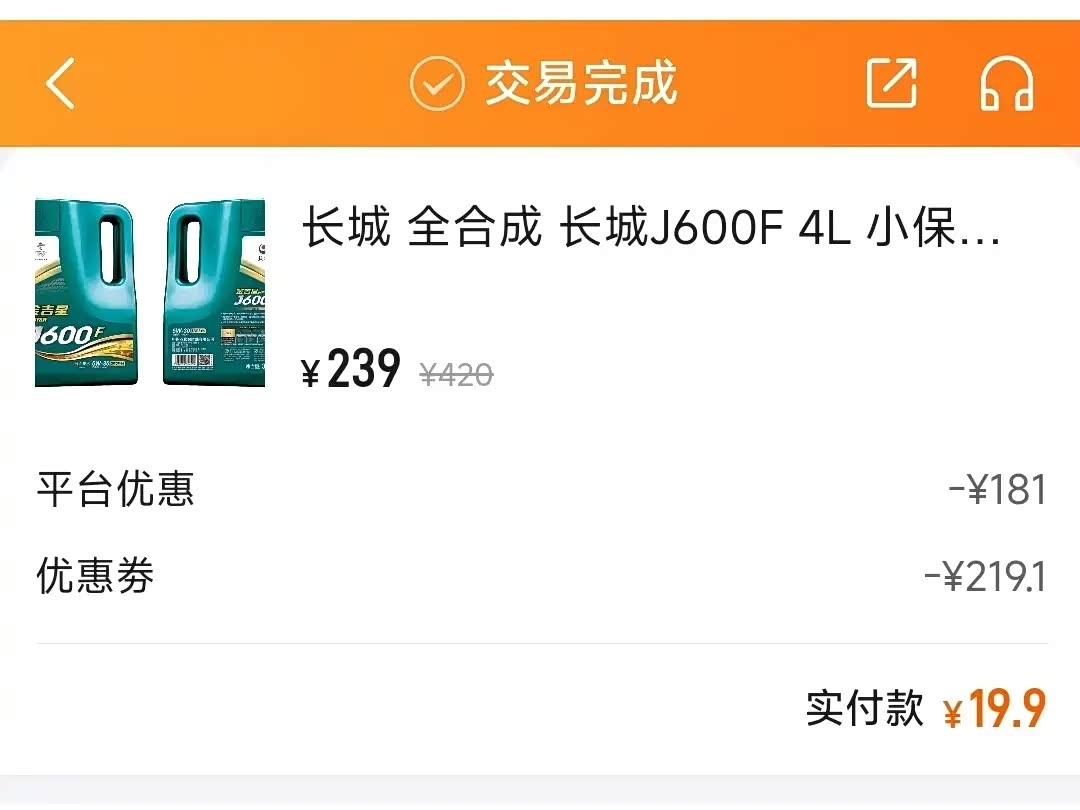 保养是买车险送的优惠券,花了19.9元做的保养。我一直都用的免费保养,前面都是买车送了四次,后面都是买车险要求送保养一次。