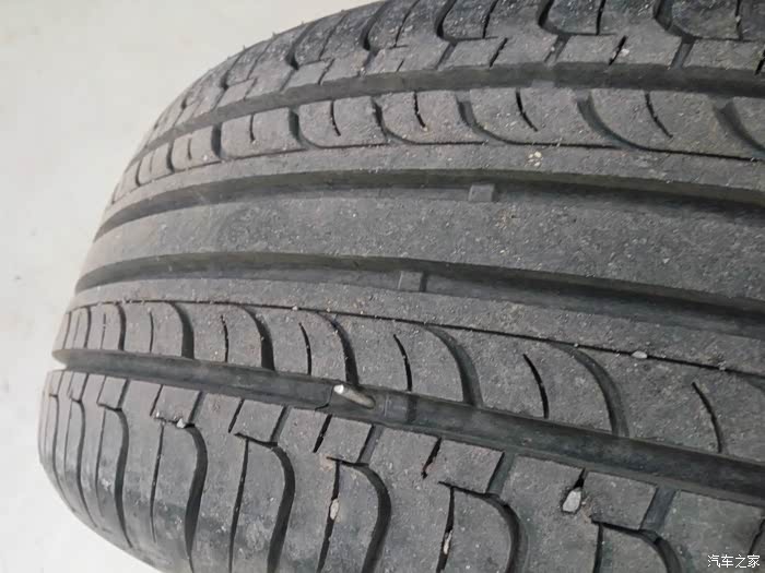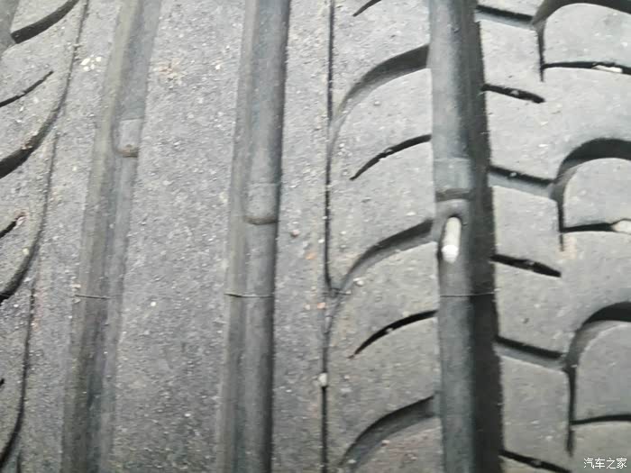 在车间给车子充气检查气压时,3个轮子都是2.2-2.3之间,右后轮气压1.6,由于205 45 16属扁胎,目示看不出了什么,就上架子检查轮胎,果然有个东东,郁闷!赶紧出去补胎,由于是大年二十八,补胎的好多都关门了,只有一家开门,一看是45的胎,说不好扒,无语......