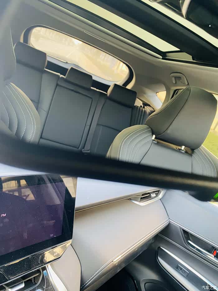 车内空间还是蛮大的,坐满员的时候也挺宽松,凌放的天窗虽然不能开启,但增加了调光和透光的功能,大大的增加了车内的通透性。