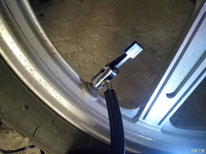 第一次充气:停车检查,外侧没找到伤处,确定是内侧
