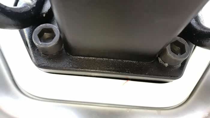 看看原装的螺丝孔。中间的这个孔在大梁后杠上是前后贯通的不知道什么用途。