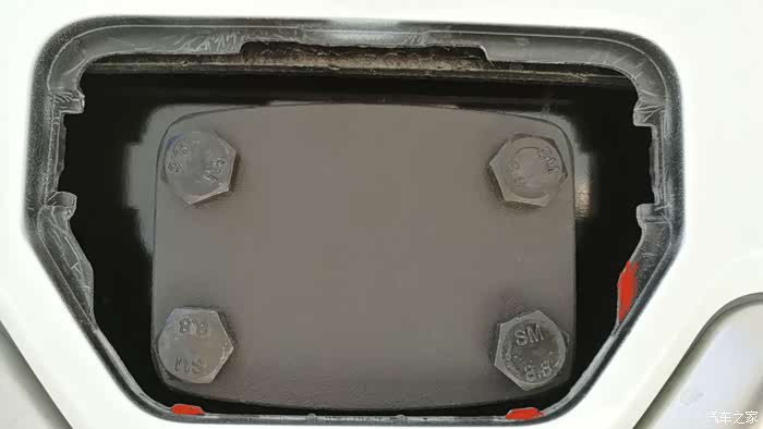先找了个尾钩垫片装上试试,看来我这个车还不算偏的太厉害,目测开孔左偏3毫米左右。从目前这个情况看,即便是无法安装 H9专用拖钩,找个通用底座也是没有问题的。这就放心了。