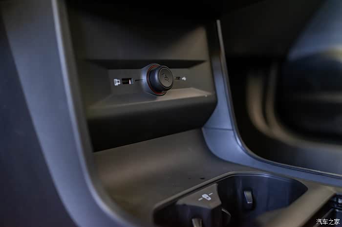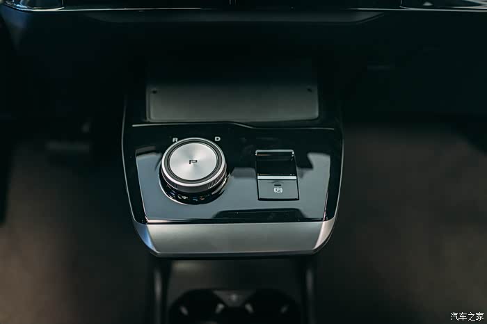 换挡机构是电子旋钮式的,手感很不错,在档把前方还配备手机无线充电区域。